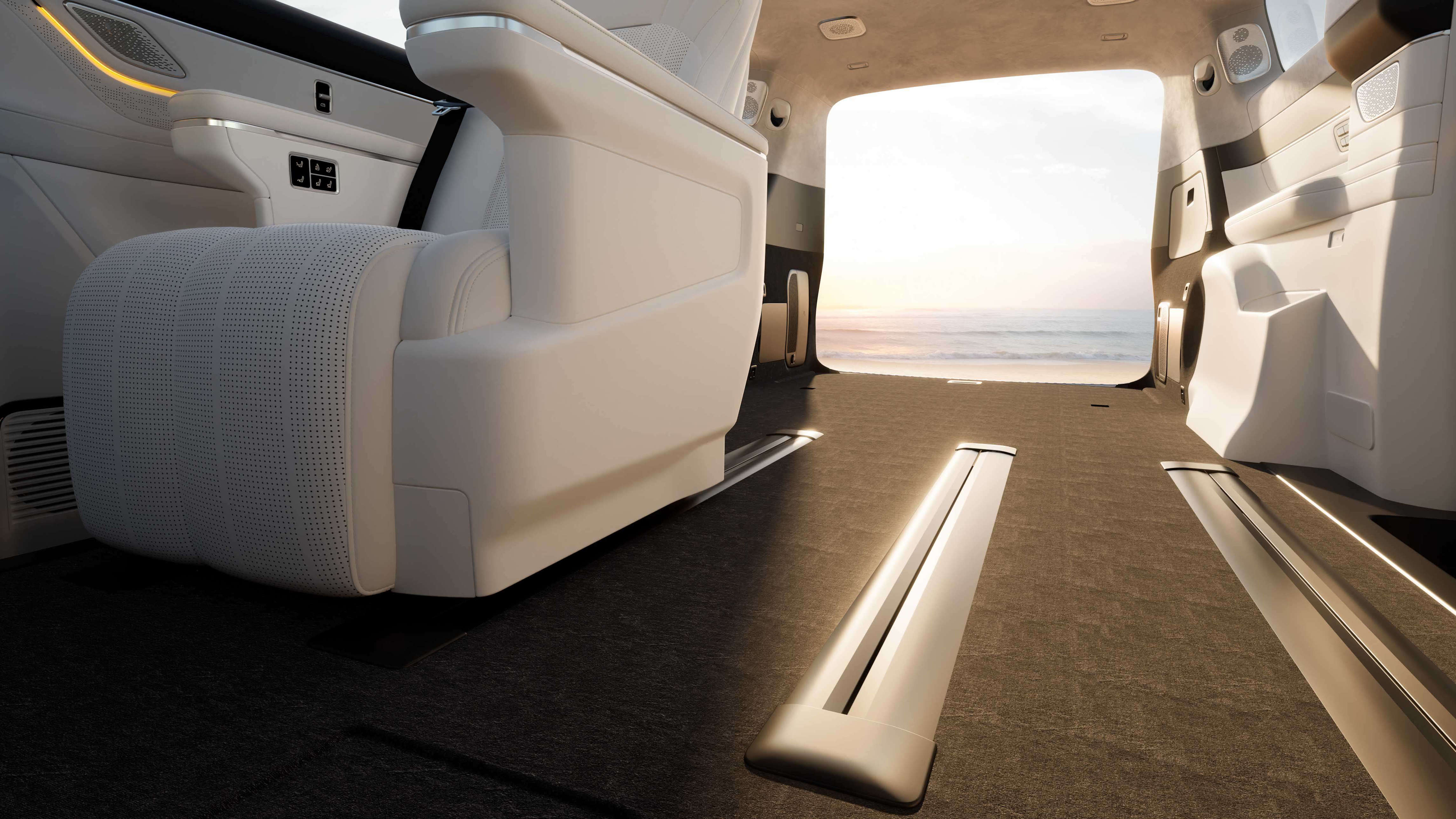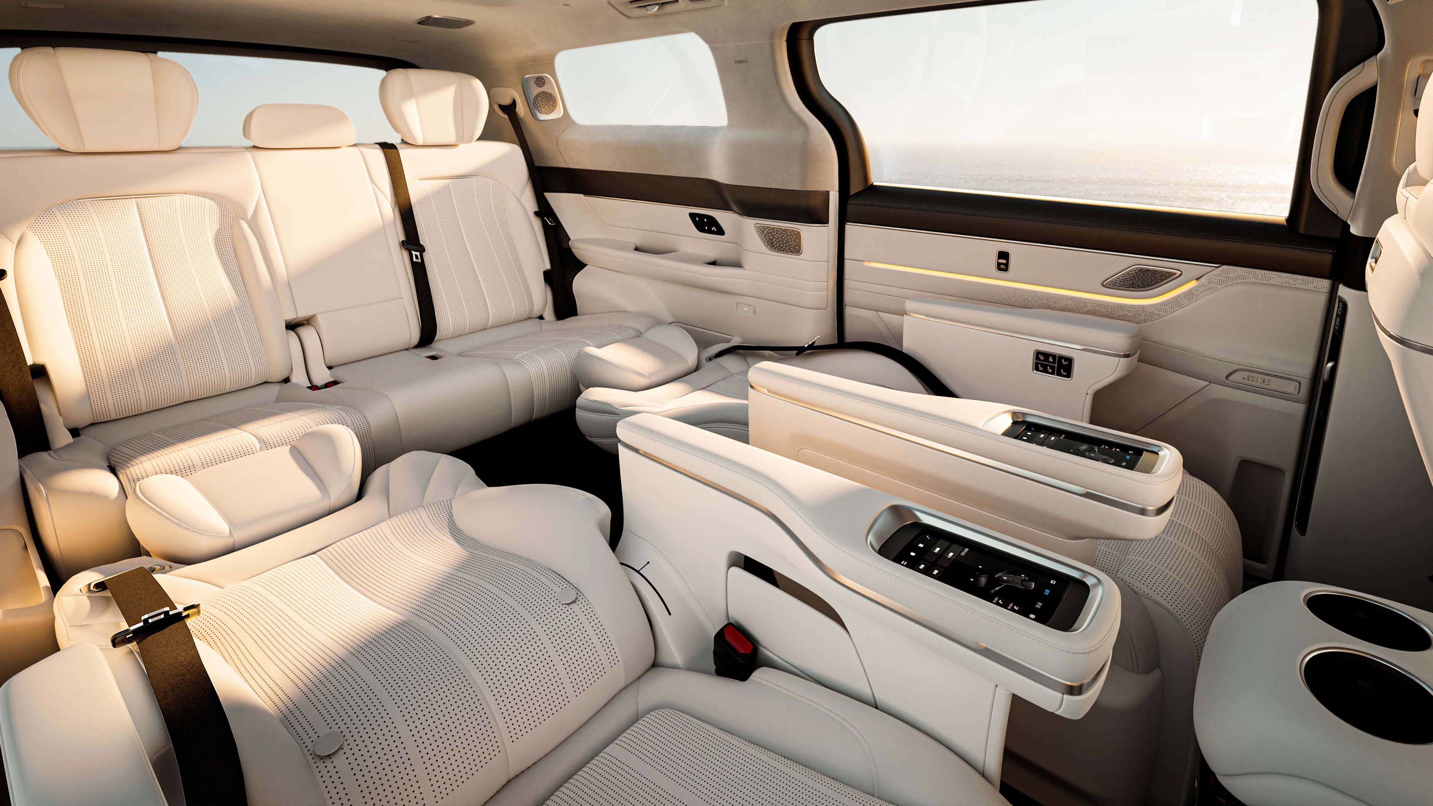 1100L后备箱可容纳15个20寸行李箱,配合1.93m超长滑轨,支持6/7/8座灵活切换,8座版车型的“魔法第四排”,可前翻、后翻或折叠隐藏,完美适配家庭出行与商务接待。