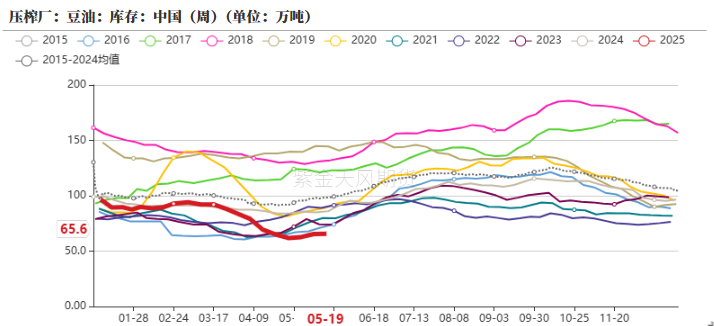 阿根廷豆油和印尼毛棕榈油价差在0美元/吨,前周35美元/吨,低于历史均值88美元/吨。